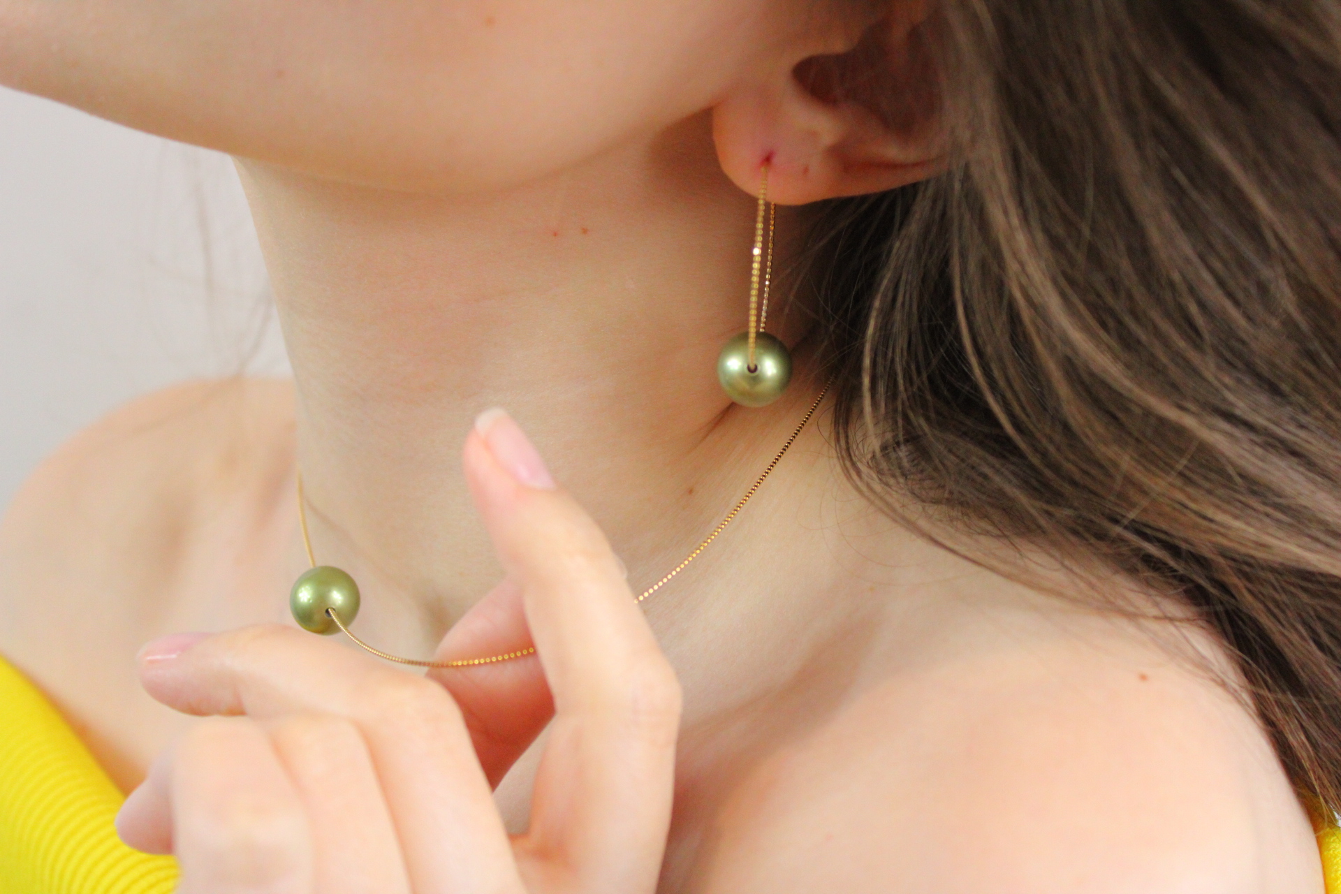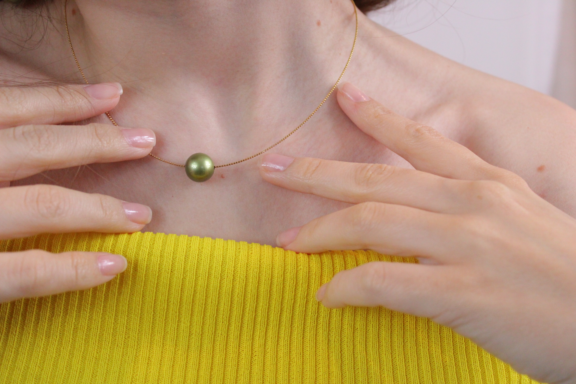 18 karaat gouden collier met groene pistache tahitian pearls