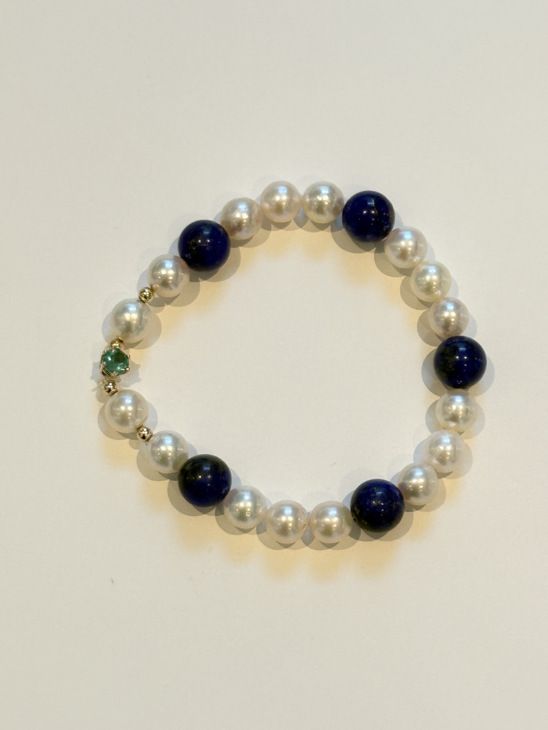 Akoya parels, smaragd, lapis lazuli armband